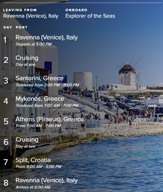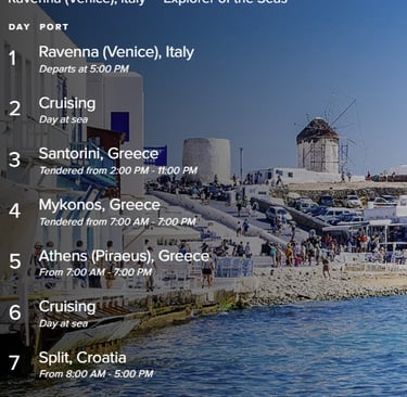 This cruise is operated by Royal Caribbean. The itinerary is subject to change per Royal Caribbean's policies.